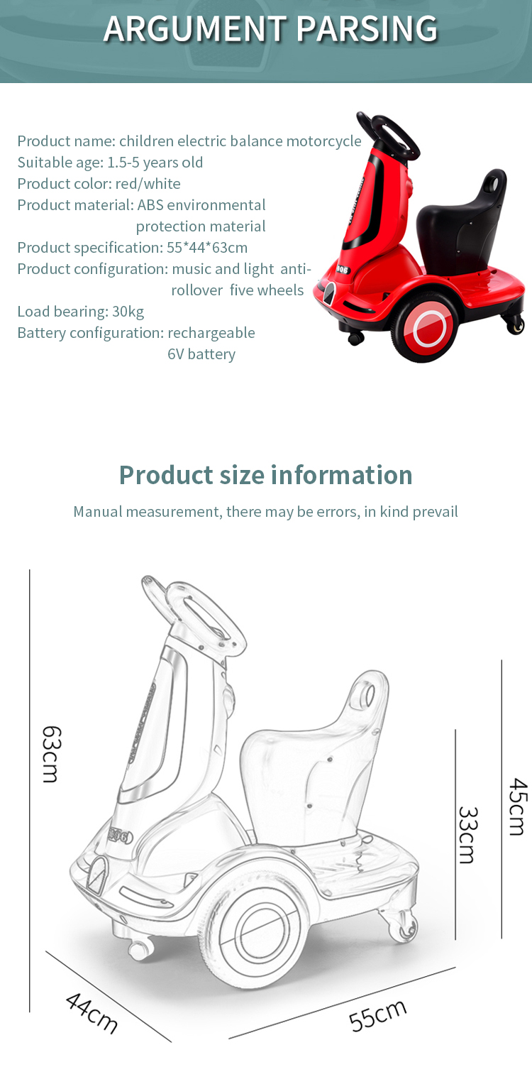Packing carton*1, children's electric motorcycle*1, manual*1