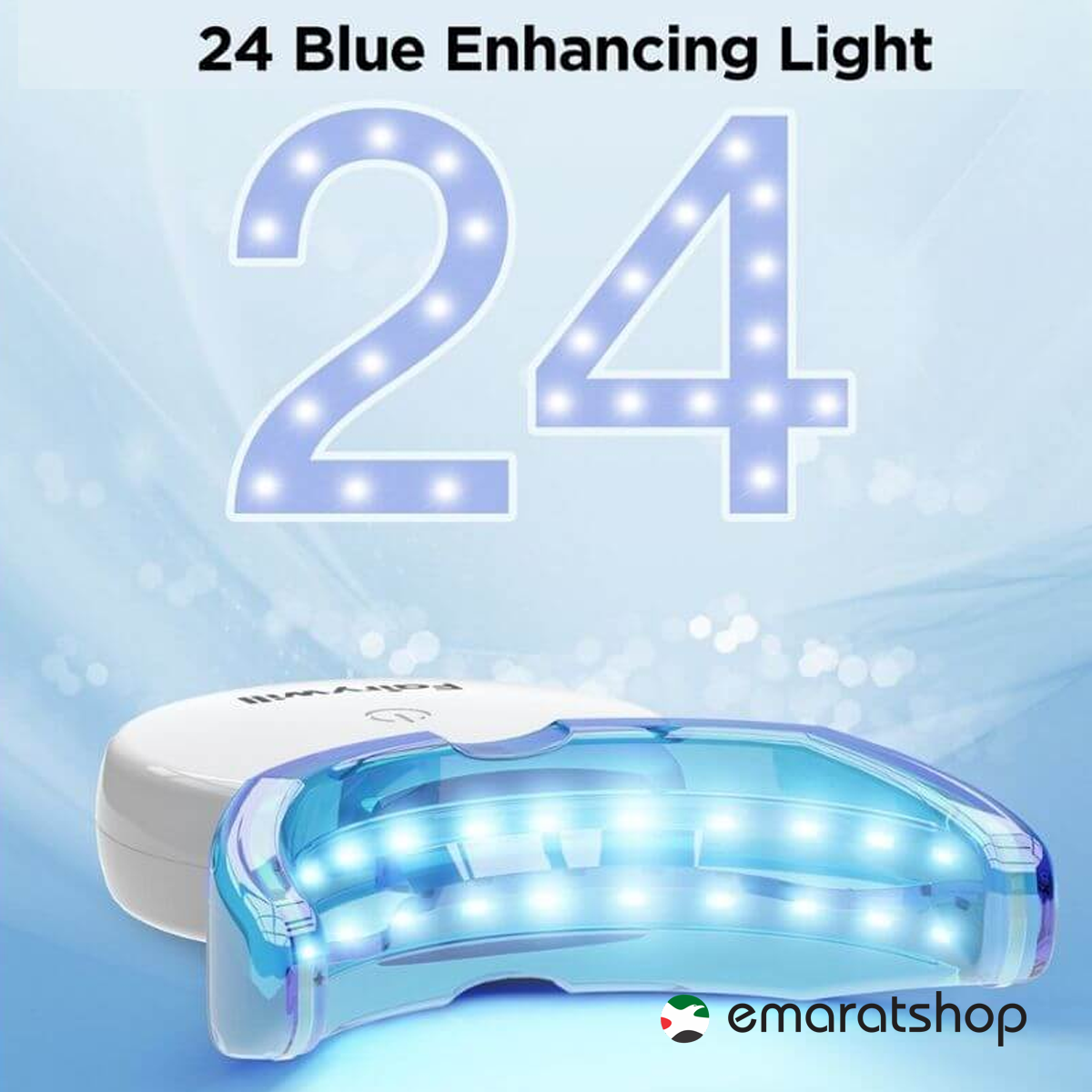 24 LEDs emit blue light for high potency dedicated whitening results, the whitening power surrounds the teeth whitening inside and out from all angles. This fully rechargeable lightweight whitening accelerator light is highly durable and offers fast long-lasting results with a built-in 10-minute timer to easily keep track of whitening sessions.