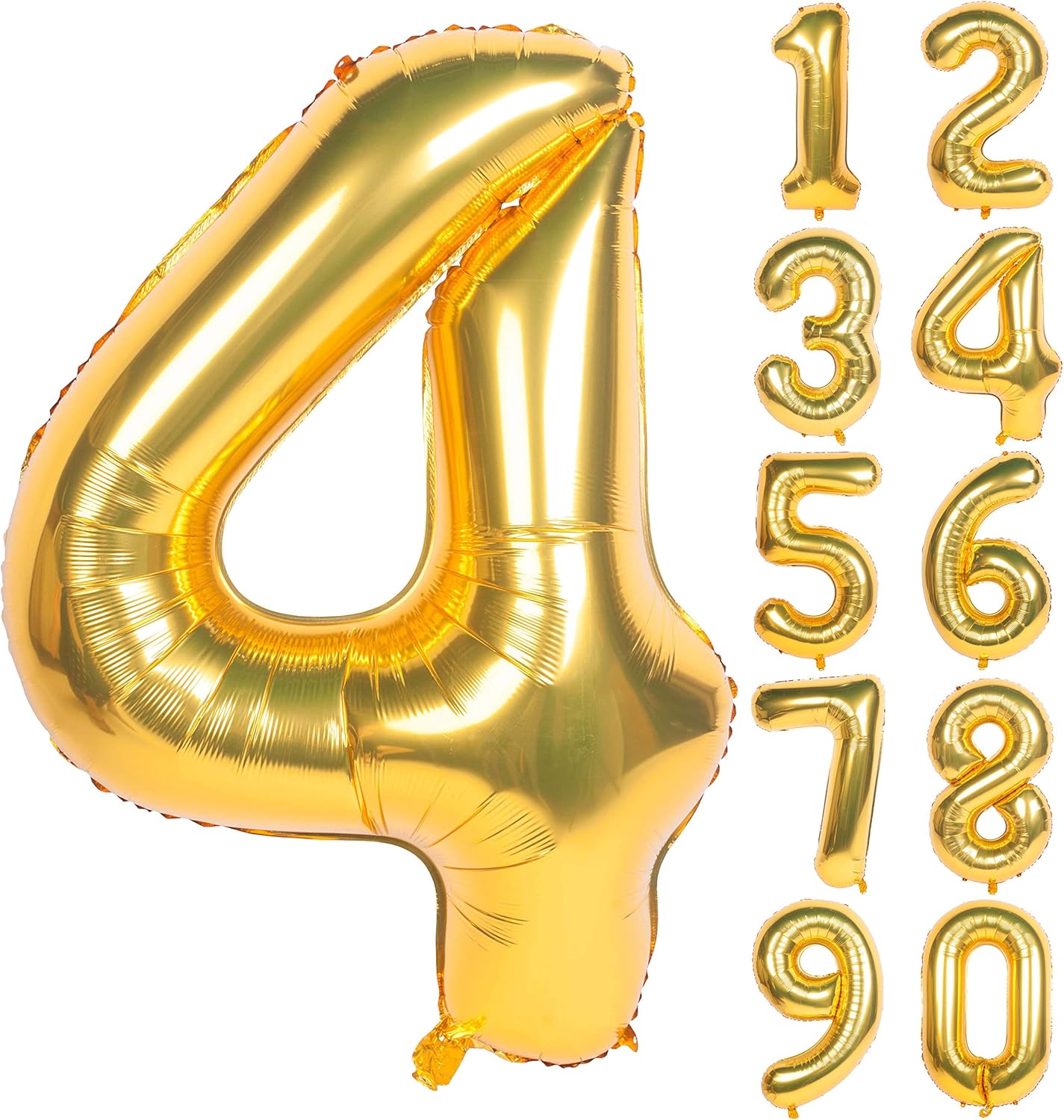 Celebrate with elegance using the Gold Number Balloons in Helium Foil Mylar, featuring the number 4. Crafted from durable, reflective foil, these balloons retain helium longer than typical latex, ensuring vibrant decorations for your birthday party or banquet. Their eye-catching gold finish adds a sophisticated touch, making any event memorable while providing easy inflation compatibility with helium tanks. Ideal for marking special milestones, these balloons combine visual appeal with lasting quality.