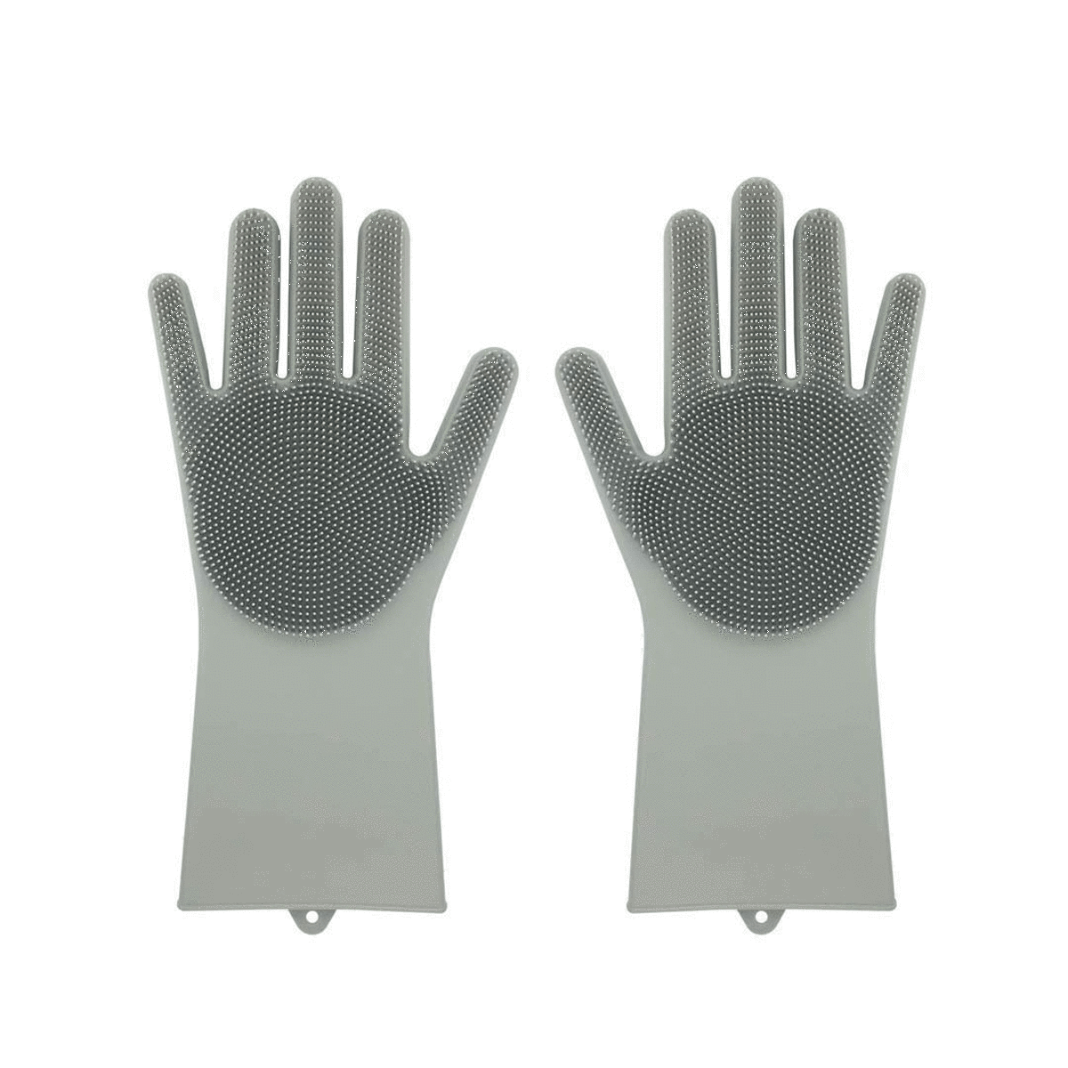 Magic Reusable Silicone gloves with Wash Scrubber Heat Resistant for Cleaning