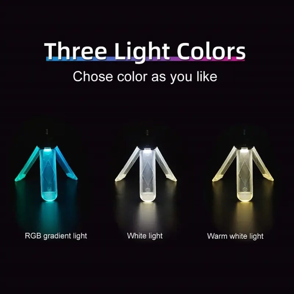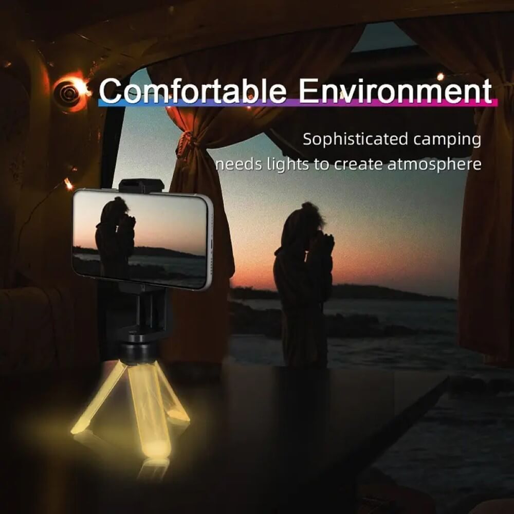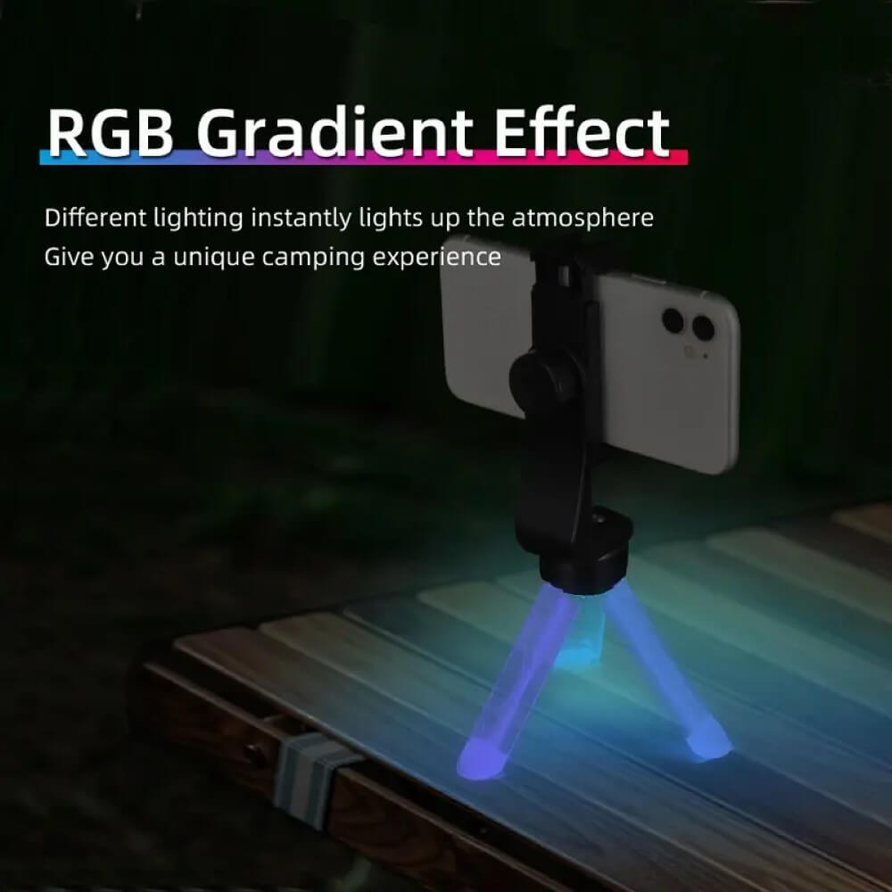 The Camping Stand Lamp features an RGB gradient effect that creates a unique atmosphere in your campsite. You can choose different lighting colors to suit your preference and create the desired mood instantly. With three light color options, you can select the color of your choice that best matches your camping van or tent. The RGB gradient effect is sure to create a sophisticated camping environment and add some color to your camping in the dark night.