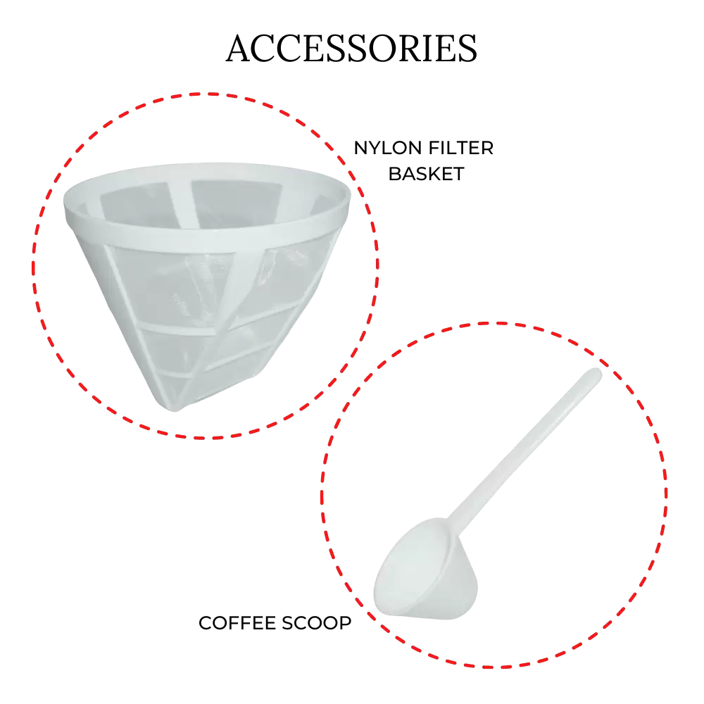The MEBASHI Drip Coffee Machine (ME-DCM1002W) features a 1.25L capacity and a powerful 750W heating element, ideal for brewing multiple cups efficiently. Its permanent nylon filter eliminates the need for disposable paper filters, offering convenience and environmental benefits while preserving coffee’s rich flavor. Designed for consistent extraction, this machine suits both home and office use, providing a reliable and straightforward brewing experience for coffee enthusiasts seeking quality and ease in every cup.