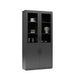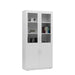 A premium full-height glass display cabinet with transparent doors, adjustable shelving, and a sleek, scratch-resistant finish for modern offices.