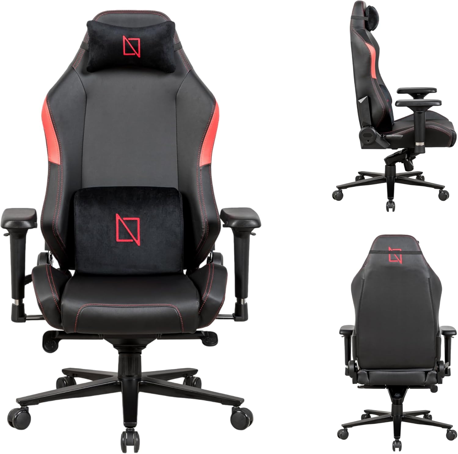 The Navodesk APEX AIR in Red features ergonomic design with breathable CloudLeather and advanced lumbar support to enhance comfort during long gaming sessions. Its memory foam headrest pillow and 4D adjustable armrests provide customized support and posture alignment. Crafted for durability and extended use, this chair blends premium materials with expert-level comfort, making it an ideal choice for serious gamers seeking both style and performance.