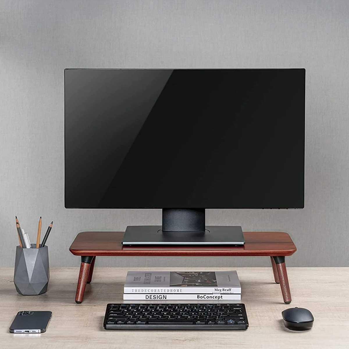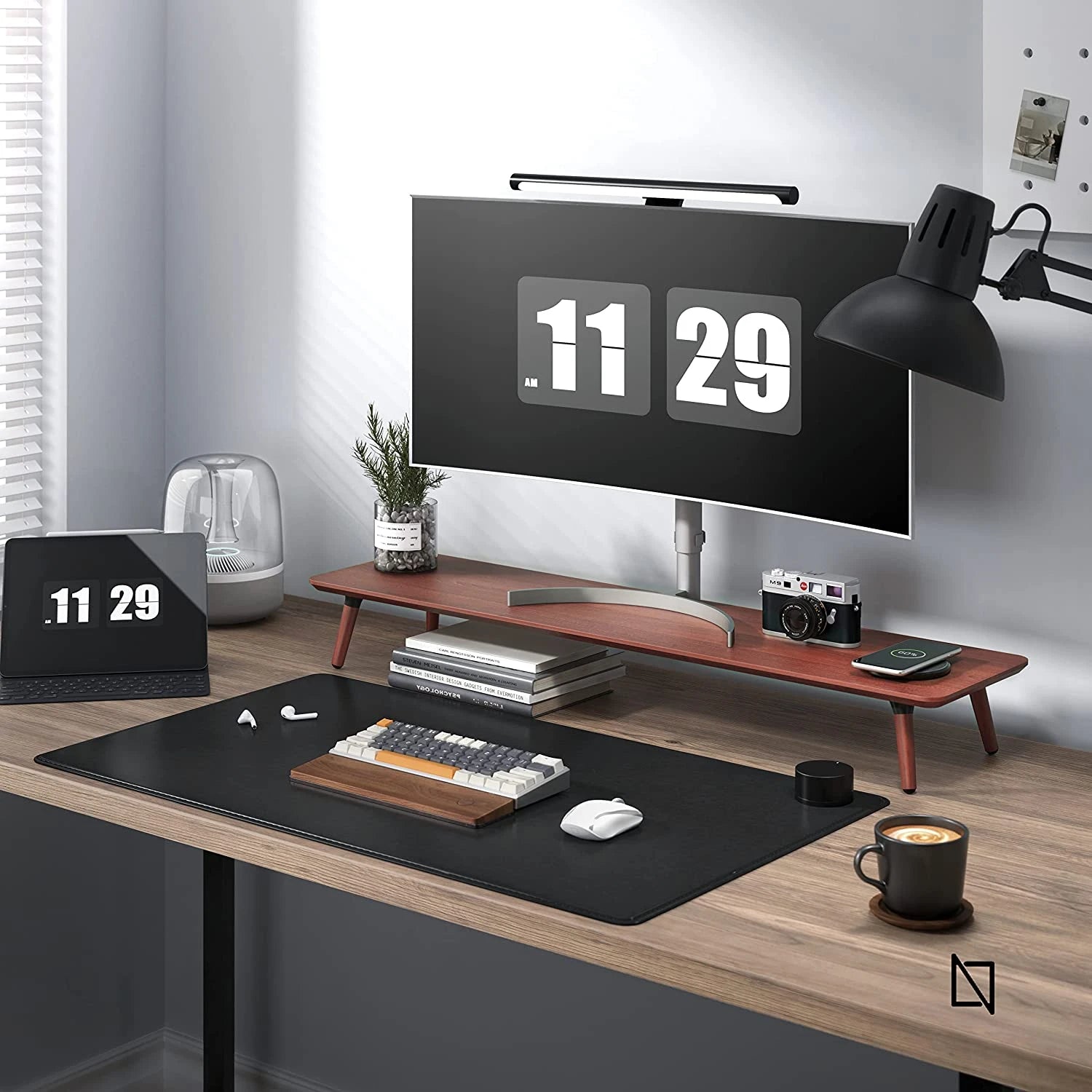 Thoughtfully designed resulting in a combination of style and function. Manufactured using advanced equipment and quality workmanship, adding a fresh perspective to the workspace. The 120mm(4.7") height offers improved posture while the space below helps organize keyboard, mouse, books, and more.