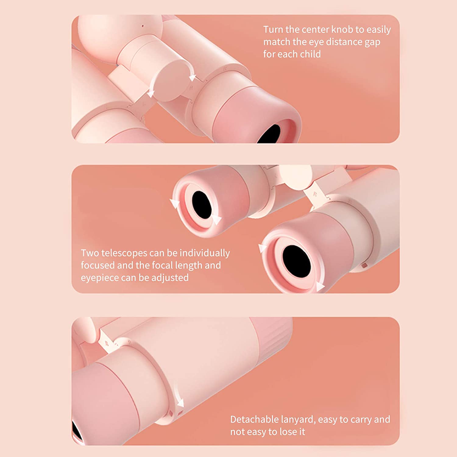 Negaor Binoculars for Kids 10X Mini Compact Binocular Toys High-Resolution Real Optics - Pink