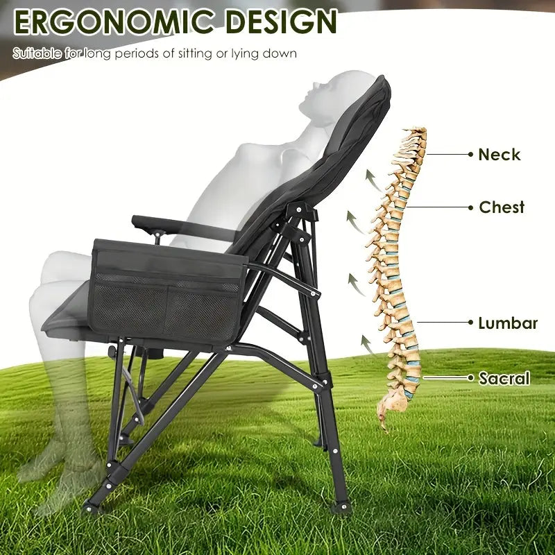 This camping chair with a rocking backrest features a humanized design, allowing the backrest to freely rock for easy and comfortable relaxation during camping trips. Made of high-strength aluminum alloy material, the chair has a stable structure, strong support, and is lightweight for easy carrying. The seat surface is designed with breathable mesh fabric, providing good breathability, resistance to moisture, and easy cleaning and maintenance. This camping chair is an indispensable leisure tool for outdoor activities.