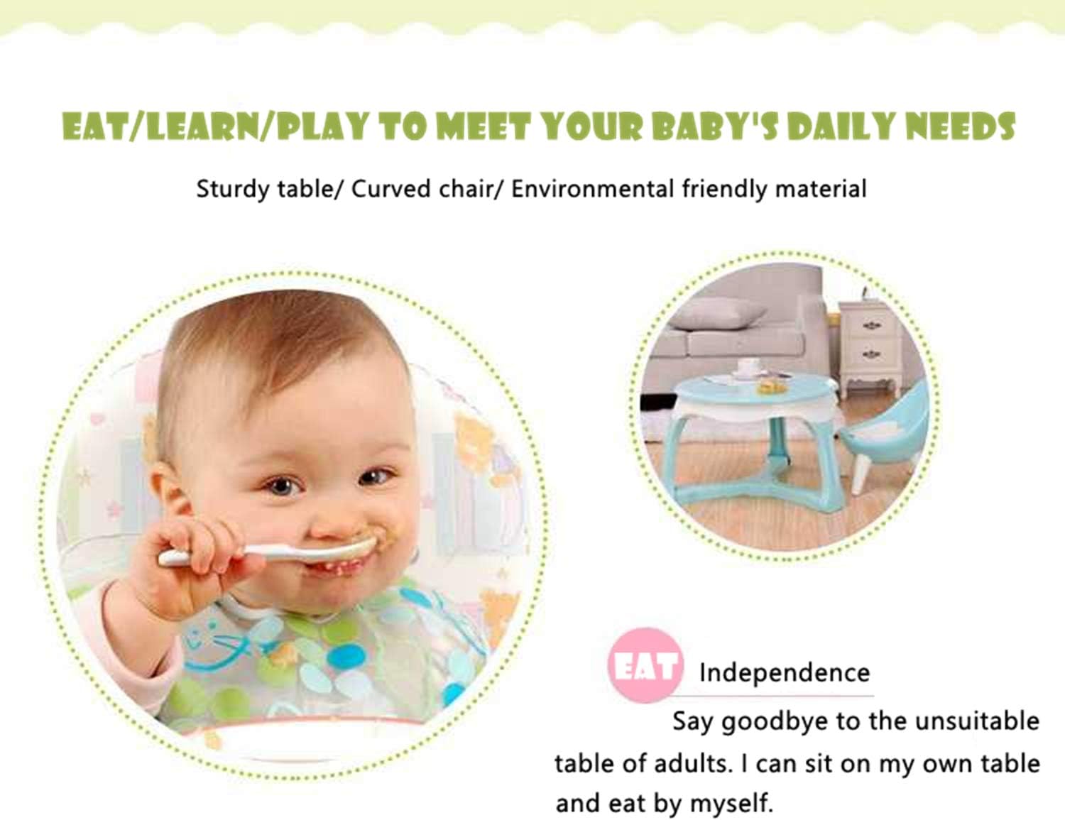 The Olmecs Kids Nursery Dining Set is crafted from environmentally friendly plastic, designed specifically for children aged 1 to 5 years. This durable and safe set includes one baby blue table and one matching chair, providing a comfortable and child-appropriate space for meals and activities. Its lightweight yet sturdy construction ensures easy handling and long-lasting use, making it an excellent choice for early childhood dining and learning environments.