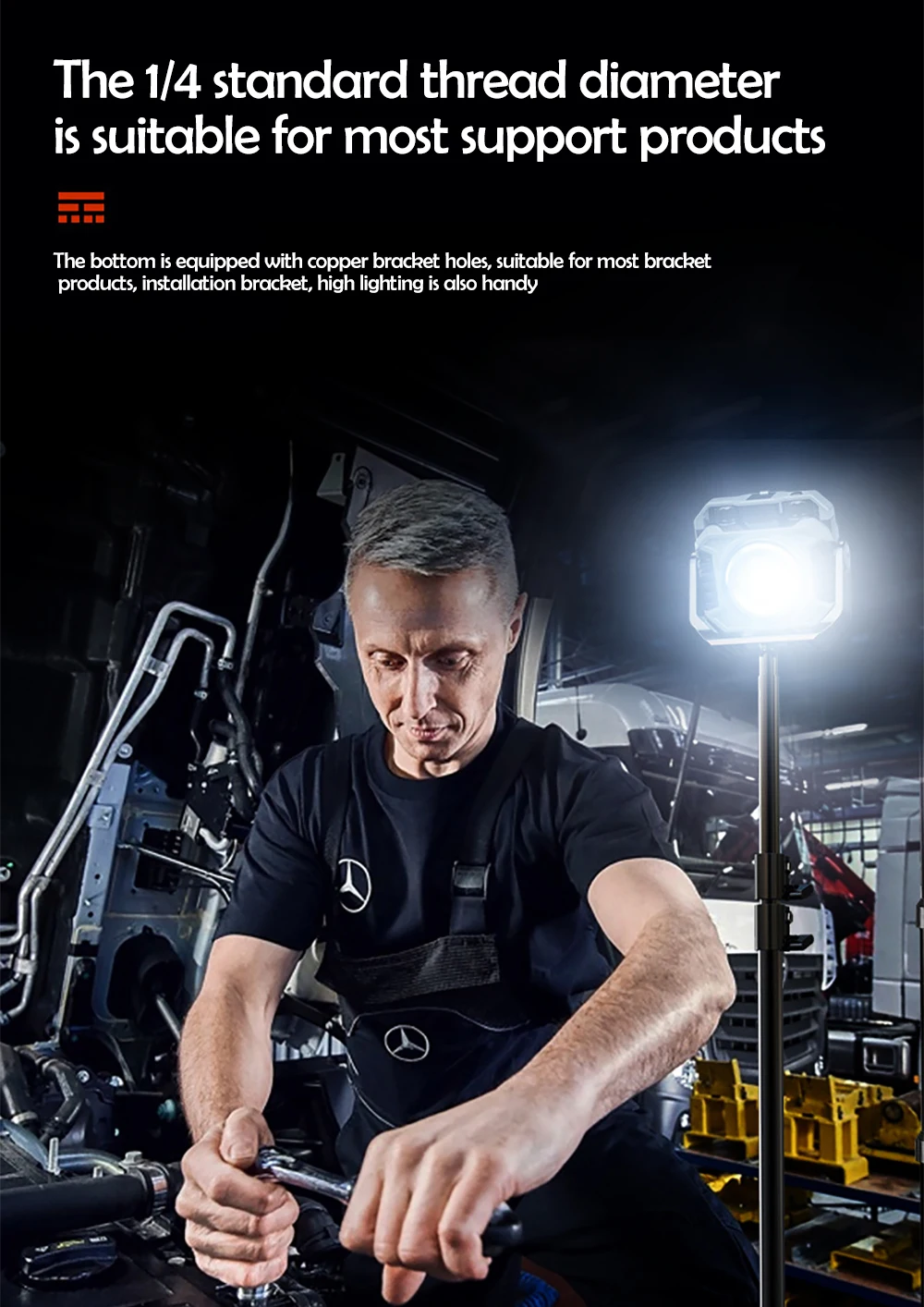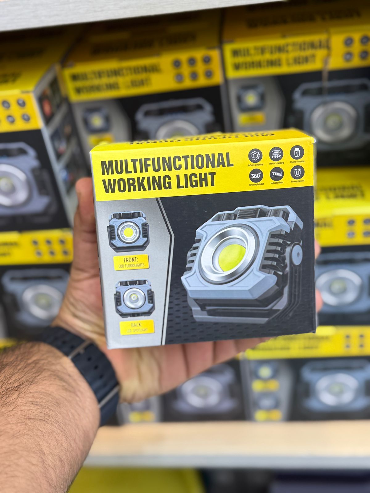 Magnetic and Portable -- This work light is designed to be portable and handheld, and it rotates 360° when placed on the floor or a table. It also features a concealed hook, a 1/4-inch tripod hole, and a magnetic back for multiple carrying and use options. The work light has a fluorescent light, making it visible in the dark.