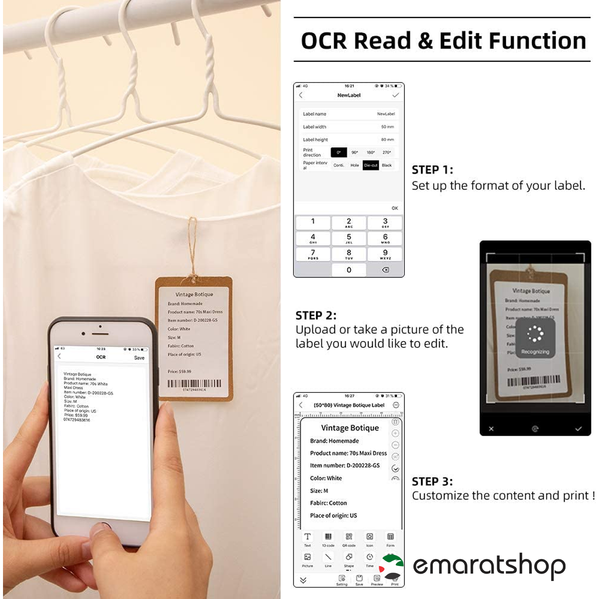 The OCR Function in the “Print Master” app; here, you can choose your favorite templates and fonts, choose the language you need, and edit the content you want to express without any charge. You only need to print your own label in three steps!