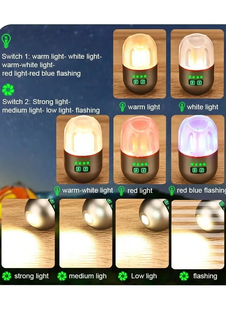 【4 Lighting Modes】 Short press the power button to turn on the backpacking lantern and achieve 4 different lighting modes as :Warm Light-White Light-Mixed Light-RED Flash(SOS). We have accessory for anti-fail hook for use to hang in tent or trees as tent lights and also equipped with plastic collapsible tripod stand to make it a camping lantern on camping tables or work as camping night light when you sleep.