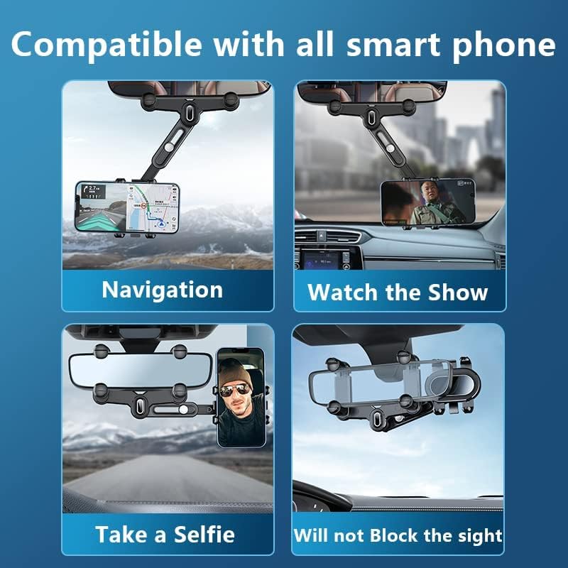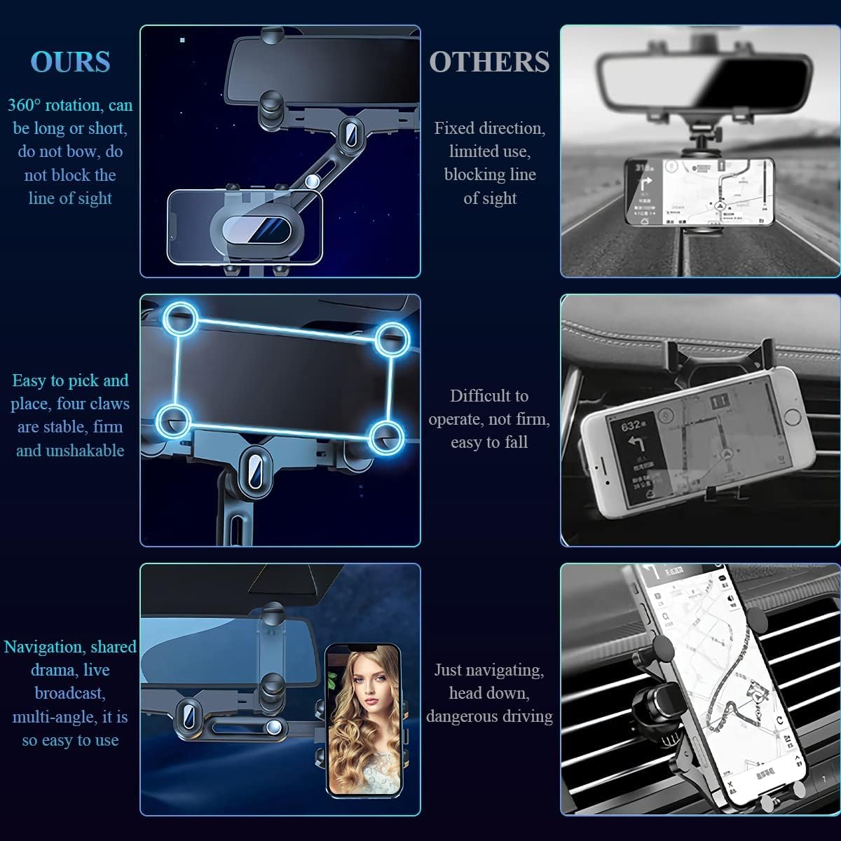 About this item 🚗【FLEXOBLE AND ADJUSTABLE】- New version multifunctional rearview mirror phone holder adopts a 360°rotating structure,...