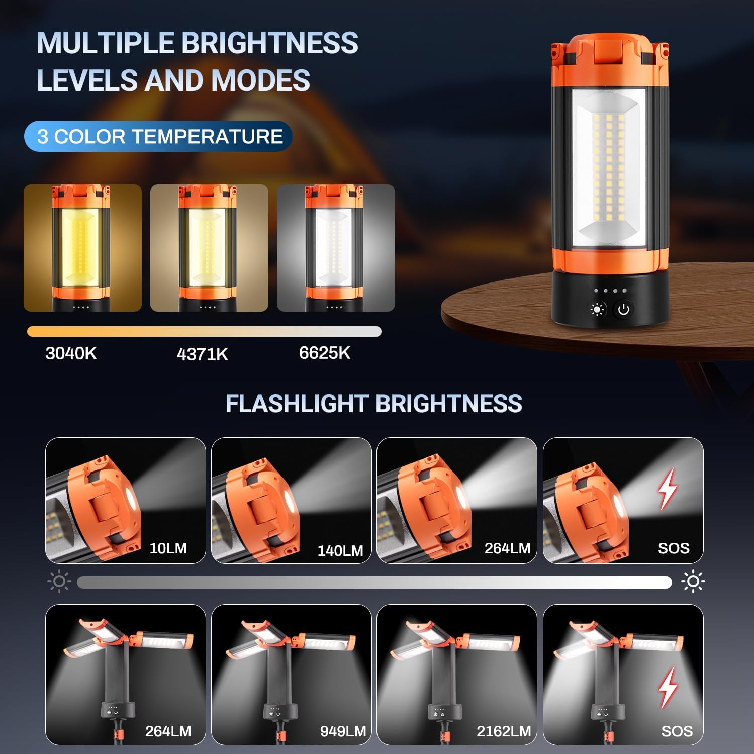 - Rechargeable, foldable camping light with 10,000 mAh battery and 12 - hour battery life