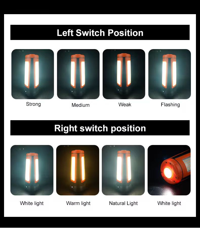 - 3 brightness levels at same color temp and 6 light modes to meet outdoor needs