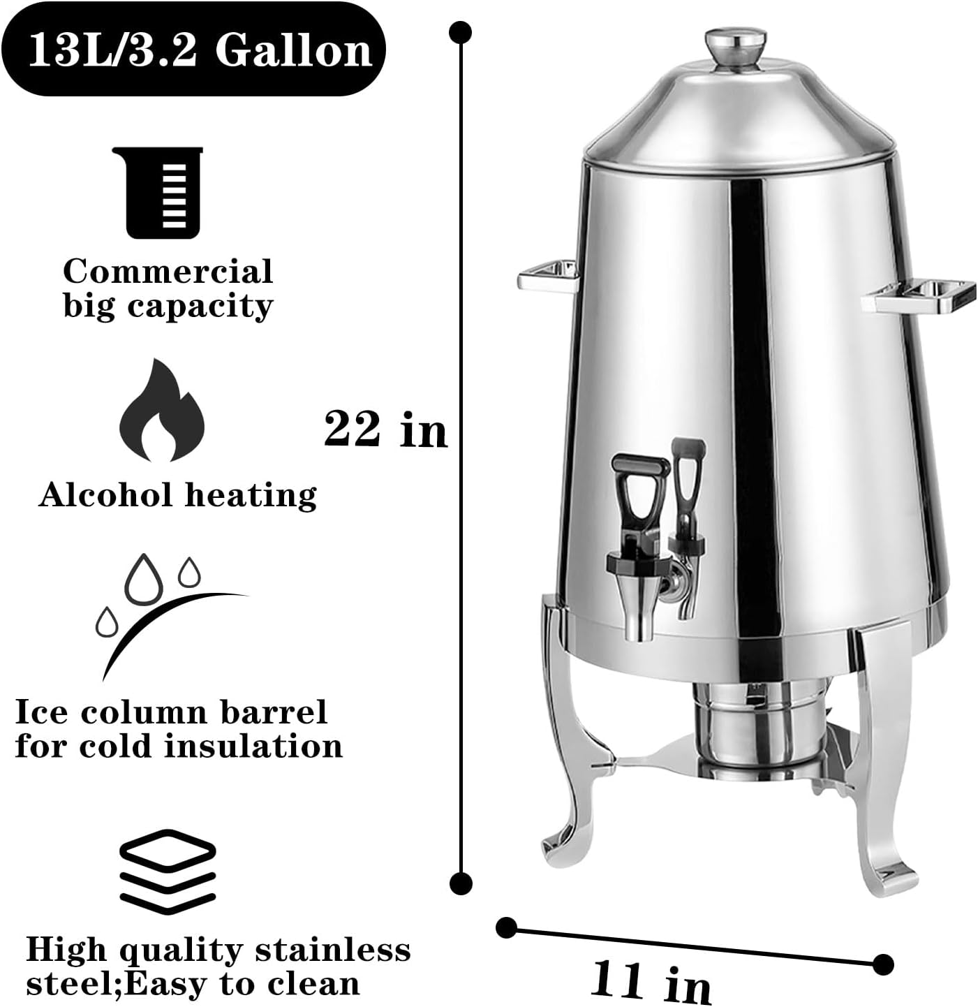 Stainless Steel Thermal Coffee Carafe Airpot Dispenser 13 L W/ Fuel Tray+Handles