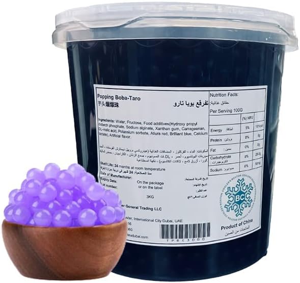 Taro Popping Boba Premium Flavored 3kg offers a vibrant, chewy texture bursting with authentic taro flavor, perfect for enhancing bubble tea, milk tea, fruit teas, and smoothies. This high-quality topping ensures consistent popping and a delightful mouthfeel, elevating your beverage experience. Ideal for commercial use, its generous 3 kg packaging supports high-volume service without compromising freshness or taste.