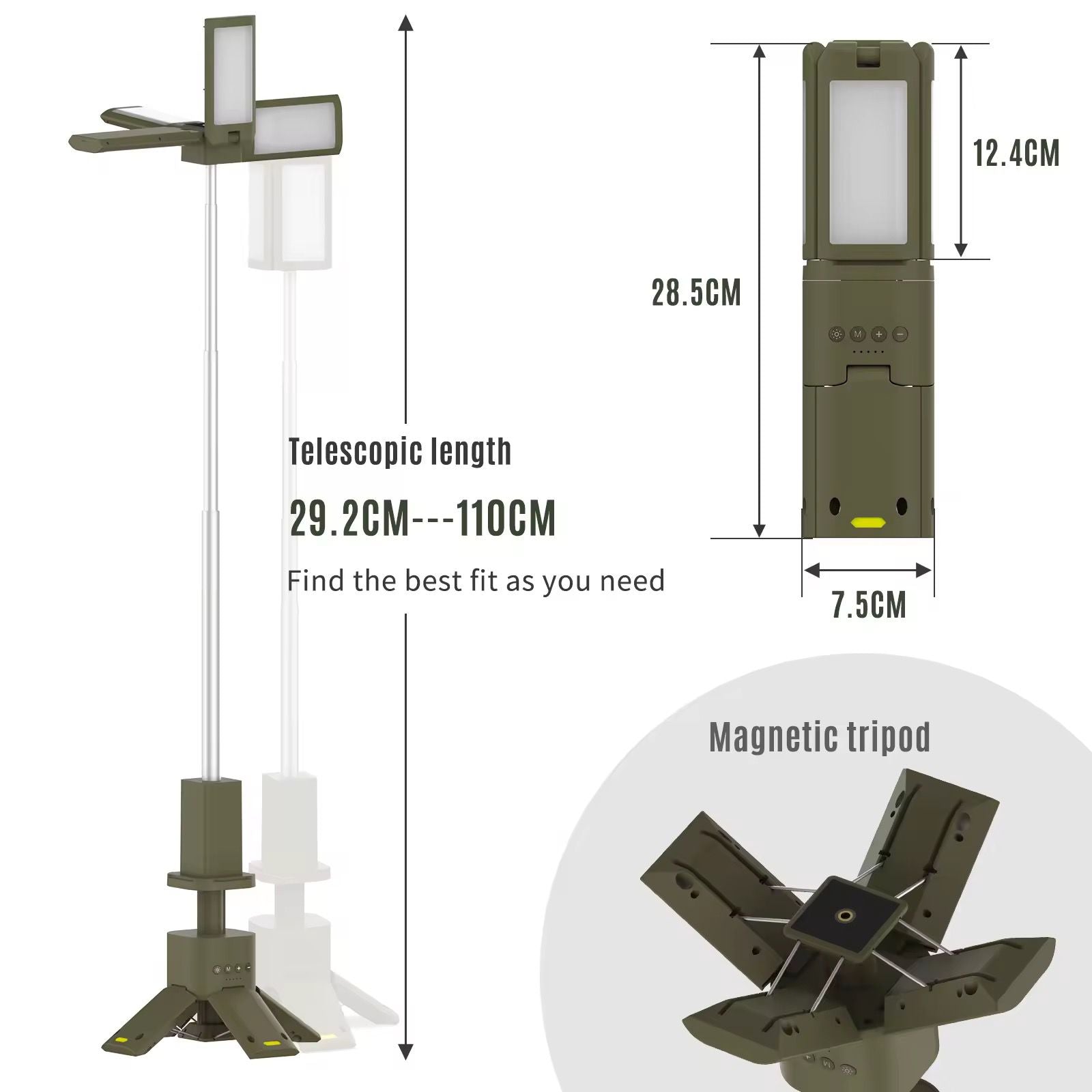 Illuminate your outdoor adventures with this versatile telescopic camping lantern, engineered for reliability in any environment. Featuring a robust 14000mAh rechargeable battery, it delivers extended runtime for multi-day expeditions. The built-in magnetic base securely attaches to metal surfaces, freeing your hands while camping, fishing, or hiking. Powerful LED technology provides bright, efficient lighting without excessive power drain. Its collapsible design maximizes portability, fitting easily into backpacks and gear bags. Ideal for emergency preparedness, tent illumination, and wilderness exploration, this lantern combines durability with practical functionality for serious outdoor enthusiasts.