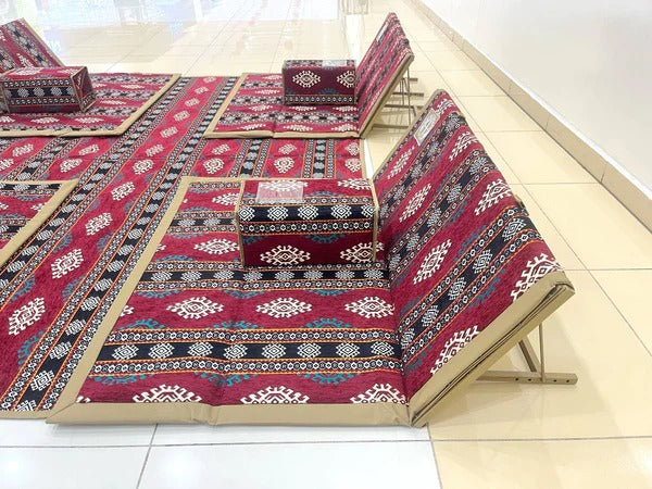 Willow Arabic Camping Floor Carpet Folding Mat Sets with 4 Folding Chair Pillows