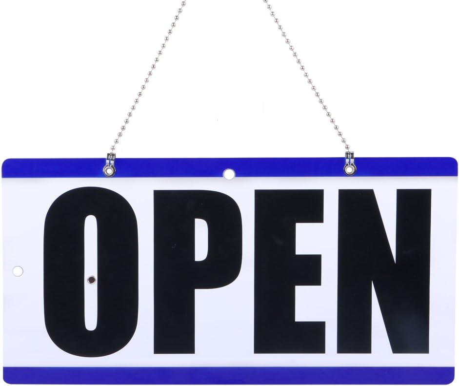 Willow's double-sided business sign combines essential messaging with practical functionality. The front displays "Open" and "Closed" indicators, while the reverse features adjustable clock hands to communicate your expected return time—ideal for retail shops, offices, and service-based businesses. Measuring 6" x 11.5", this compact sign fits standard door windows and countertops. The vibrant blue finish ensures visibility from a distance, making it an effective tool for managing customer expectations and reducing unnecessary inquiries during breaks or closures.
