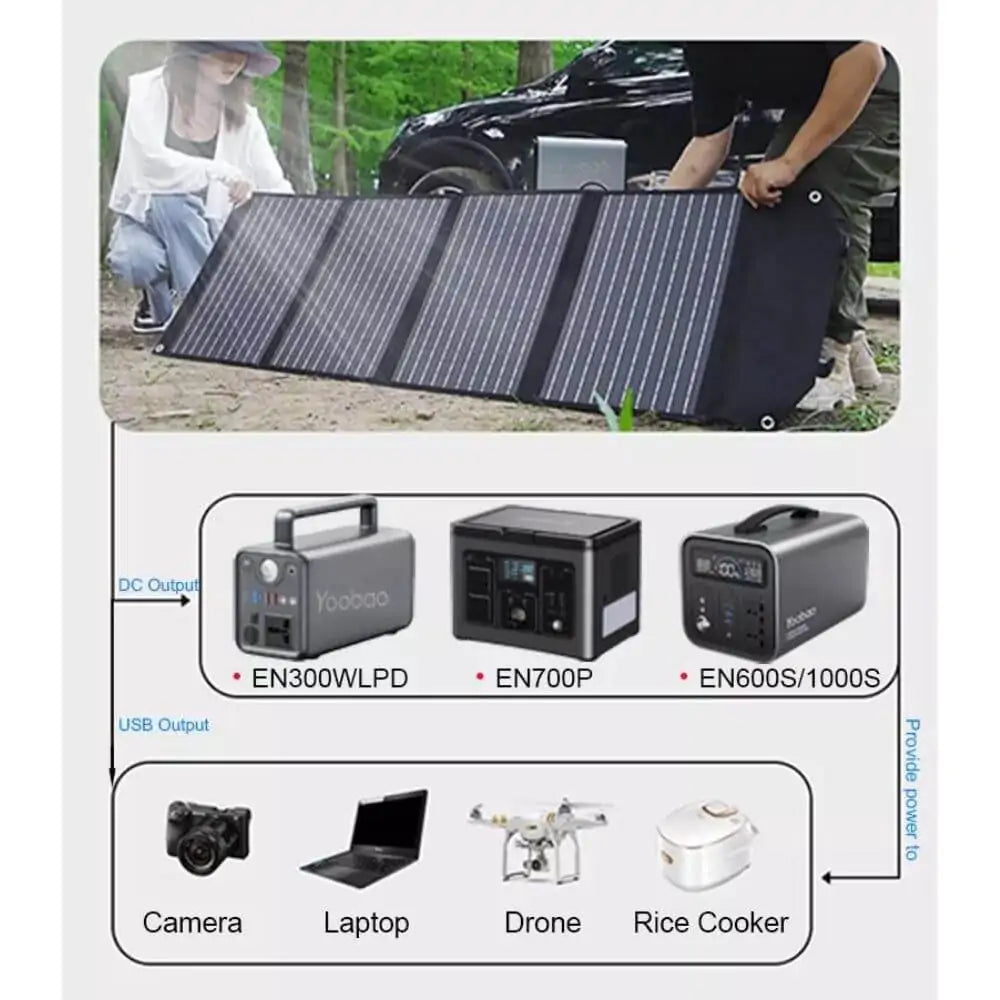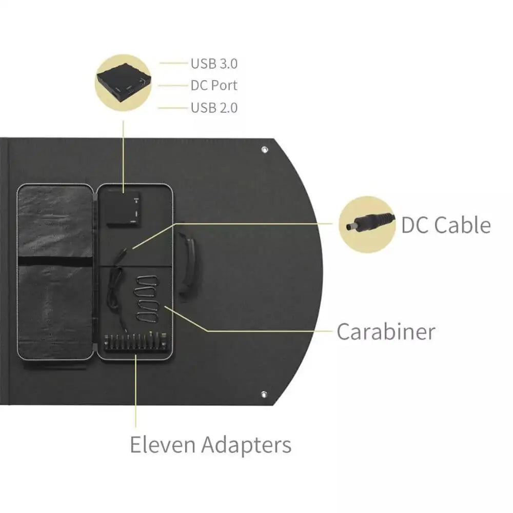- Foldable bag design with fabric covering, high portability, easy for storage, integrated charging cable design, and durable