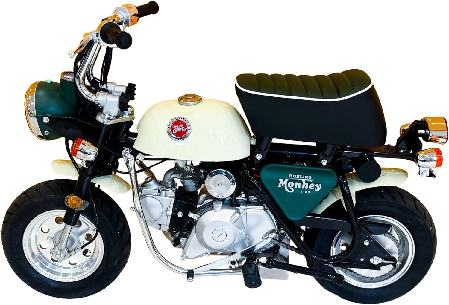 Experience the classic charm of motorcycling with this VLRA Z50 non-riding display model. This beautifully crafted piece showcases authentic retro styling with its distinctive cream and green colour scheme, complemented by gleaming chrome trim accents. The motorcycle features a modern digital display that adds a contemporary touch to its vintage aesthetic. Notable details include amber turn signals, a comfortable black quilted seat with white piping, and meticulously replicated mechanical components. The model demonstrates exceptional attention to detail, from its realistic headlight assembly to the precisely crafted handlebars and controls. This collectible piece serves as an excellent display item for motorcycle enthusiasts and collectors, capturing the essence of classic motorcycling heritage while incorporating modern design elements. Perfect for showcasing in home offices, studies, or personal collections, this model represents the perfect blend of nostalgic charm and sophisticated craftsmanship.